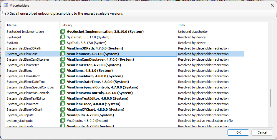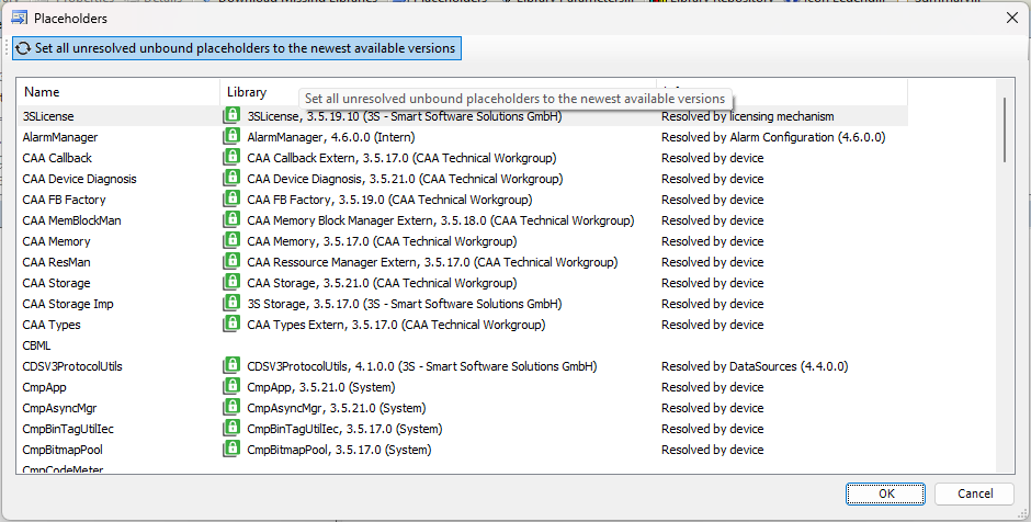 Click the "Set all unresolved unbound placeholders to the newest available versions" button:
