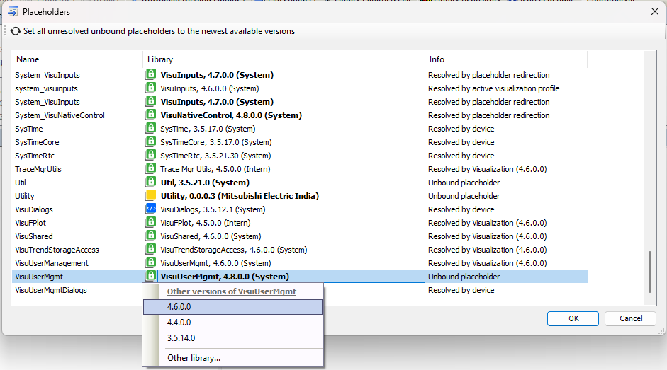 Next, set the VisuUserMgmt library to version 4.6.0.0: