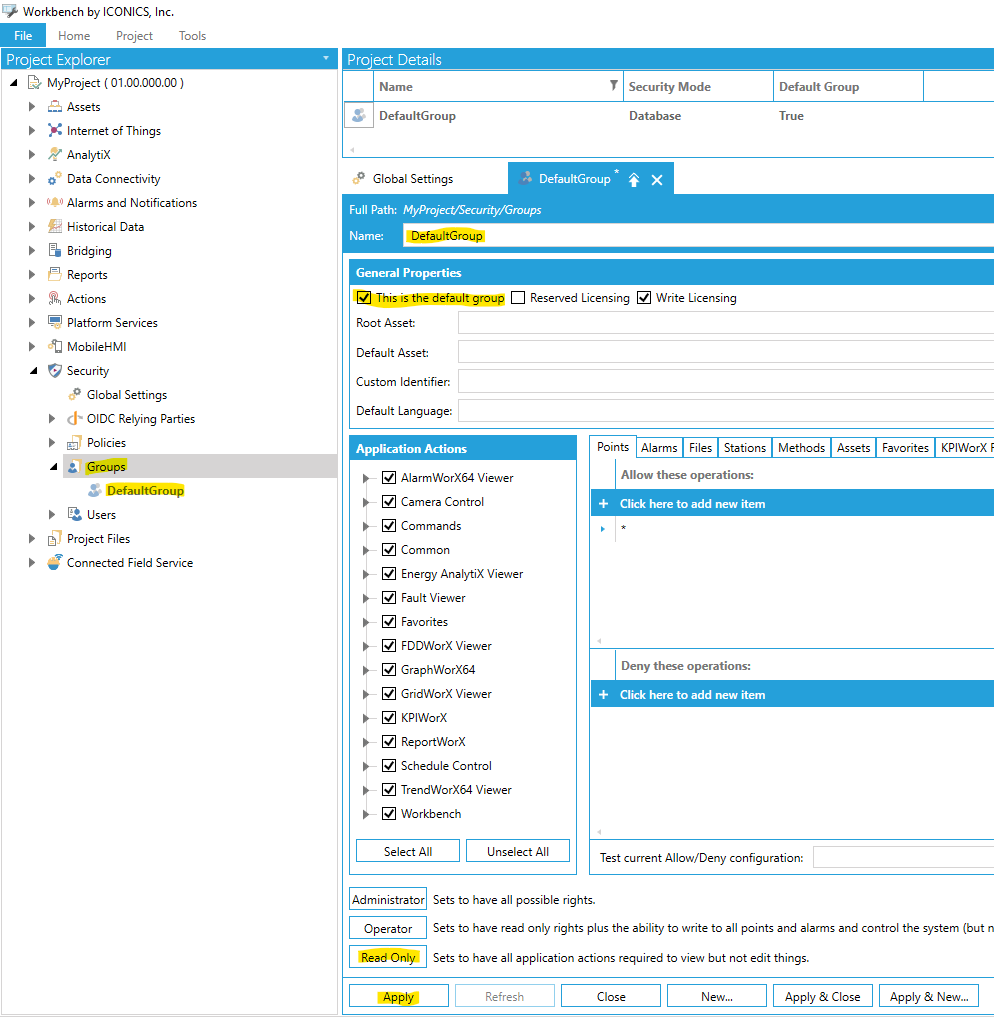 Iconics Suite - Default Group as universal Read Only User [Iconics Security]