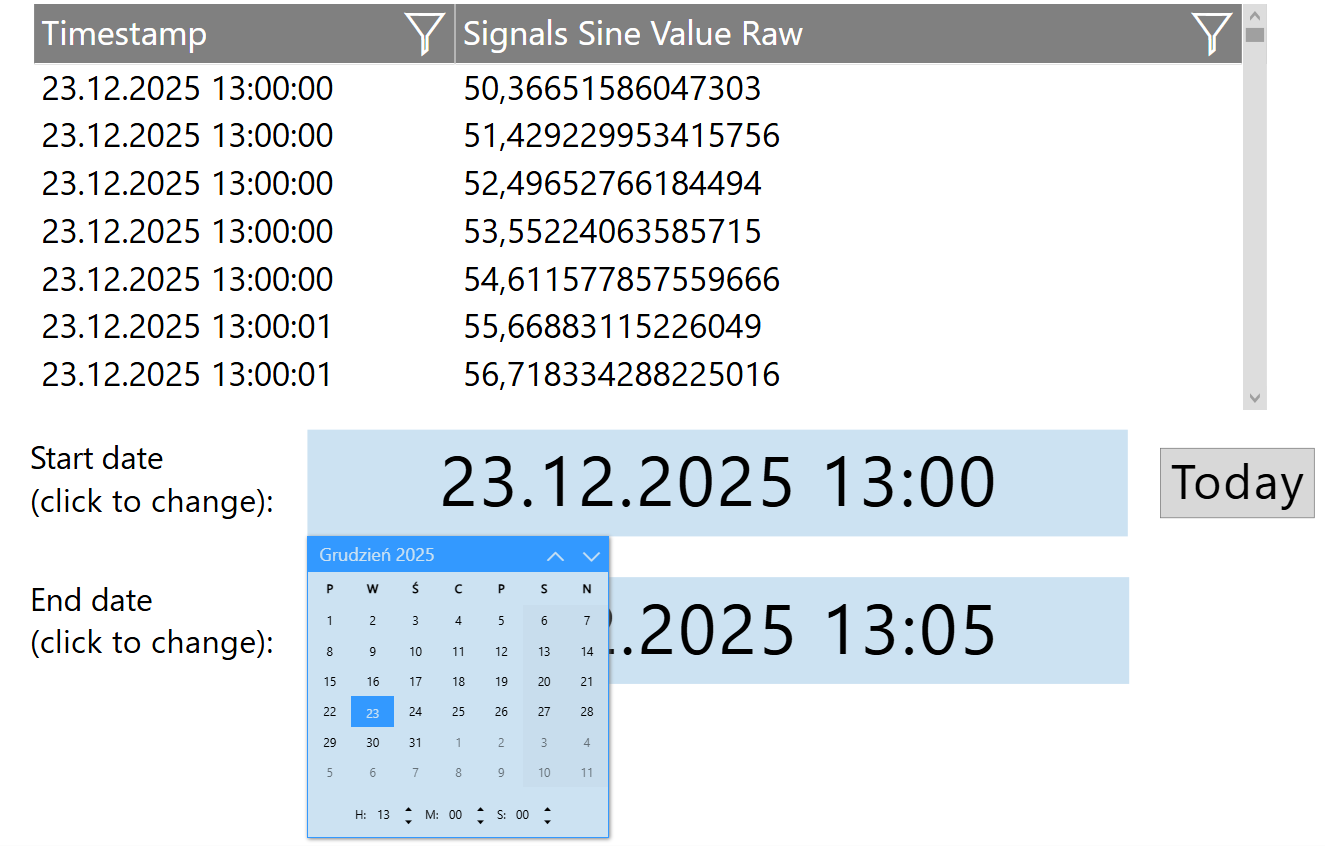 This article explains how to use local DateTime variables to filter historical data presented in a table and set the times using a user-friendly time picker in form of a calendar. The GraphWorX display used in the example is added as an attachment.