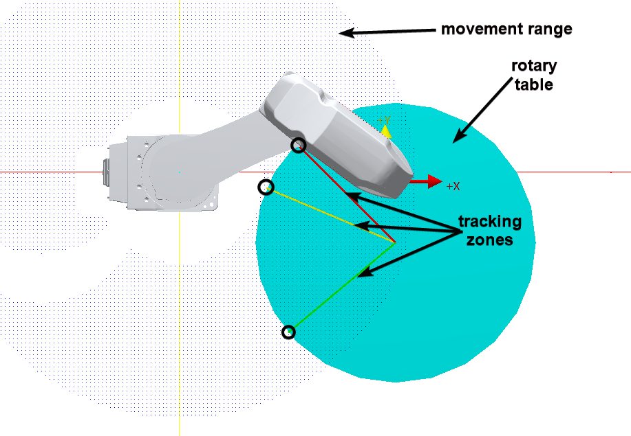 In the case of tracking with a vision system, the camera should be calibrated, as a result of which we will obtain a relationship between the coordinates of the photo and the location of points in the robot space.